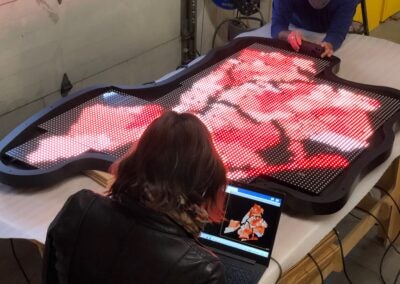 Illuminate Covid-19 uses a Video-LED lightbox to present viewers with the graphically familiar shape of New York’s five boroughs. Data representing four categories (illness, mortality, poverty and race) is then translated into mappings using light intensity and color saturation. As viewers take in the lightshow, the lights do what they do best — expose. In this case, the systemic inequities embedded and demonstrated in the impact of COVID-19 on New York City.